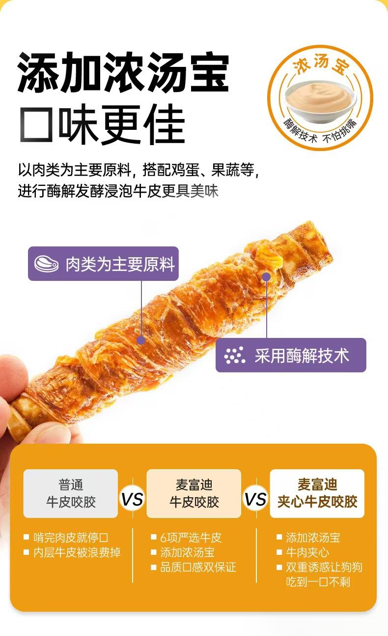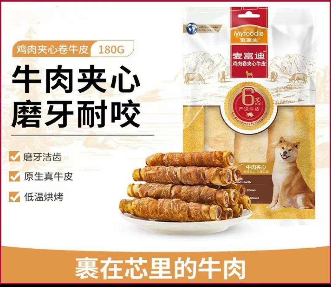 麦富迪狗狗零食鸡肉夹心卷牛皮(180g,5支装)是一款深受狗狗喜爱的零食