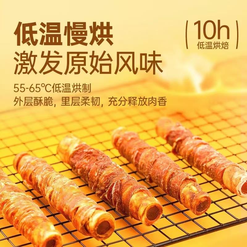 优质食材:选用新鲜鸡肉和优质牛皮,确保零食的口感和营养价值。