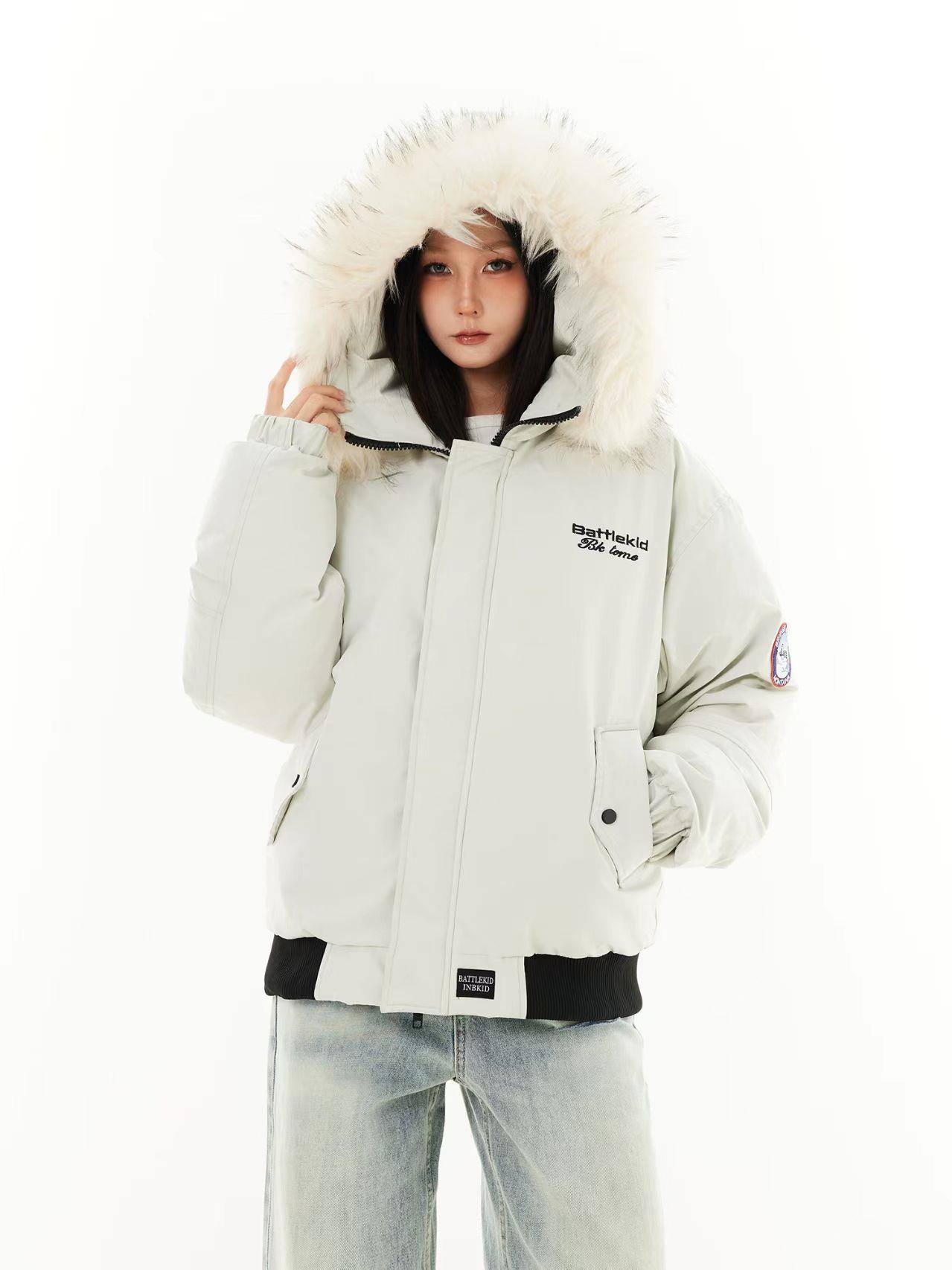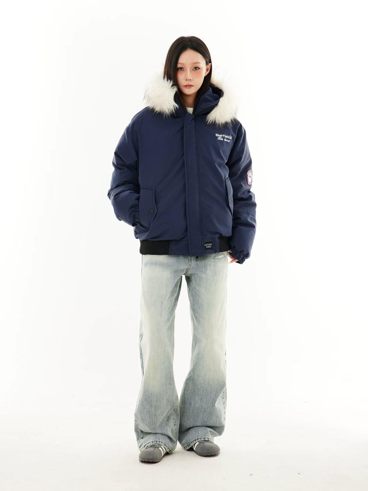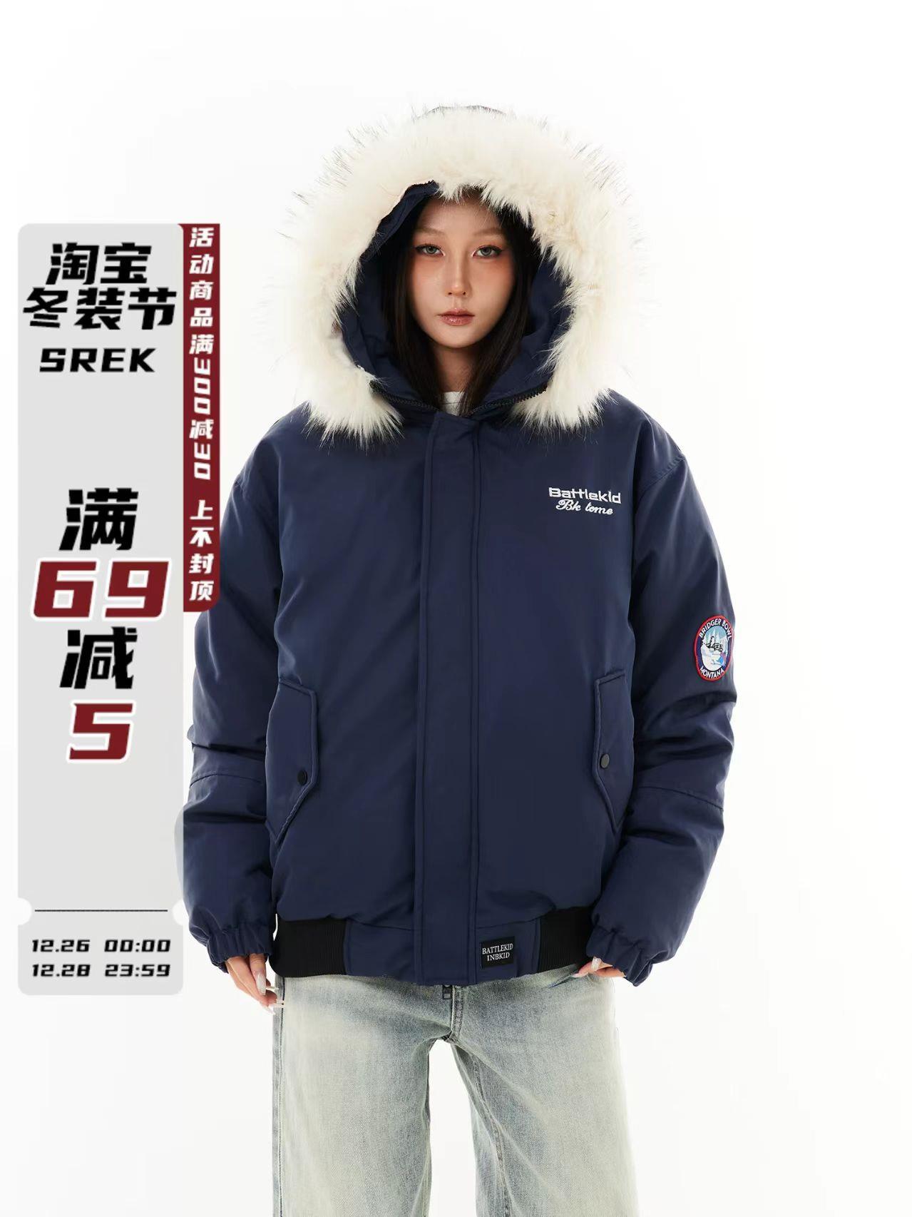 美式复古工装毛领连帽棉服外套男女冬季飞行员潮牌加厚棉衣