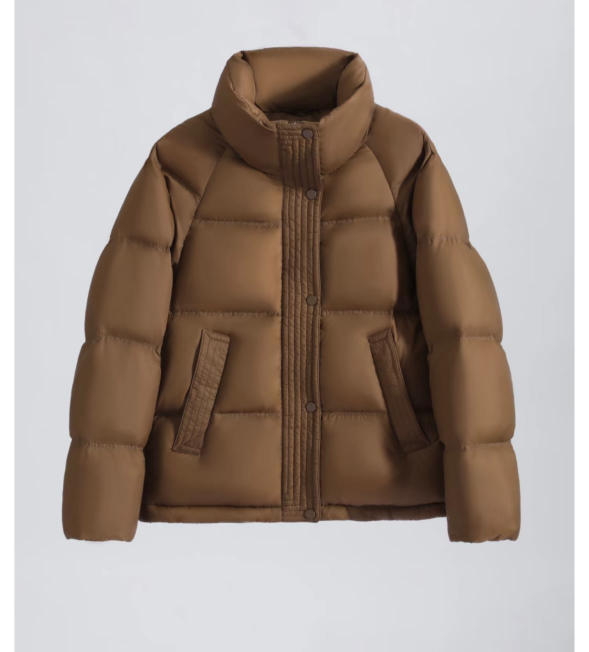 图案:常见的图案有纯色、拼接、条纹、格子等。纯色羽绒服简洁大方,易于搭配;拼接和条纹图案的羽绒服则更具时尚感和设计感;格子图案的羽绒服则给人一种复古、优雅的感觉。