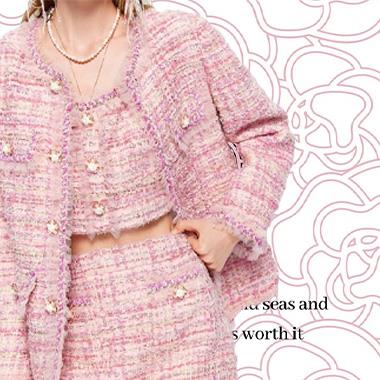 小香风其色彩和花纹丰富,常见格纹、条纹、星点、提花等。设计简洁,有精致剪裁与优雅线条。注重细节、的设计精致。材料多采用高品质面料、触感柔软舒适,穿着显档次。