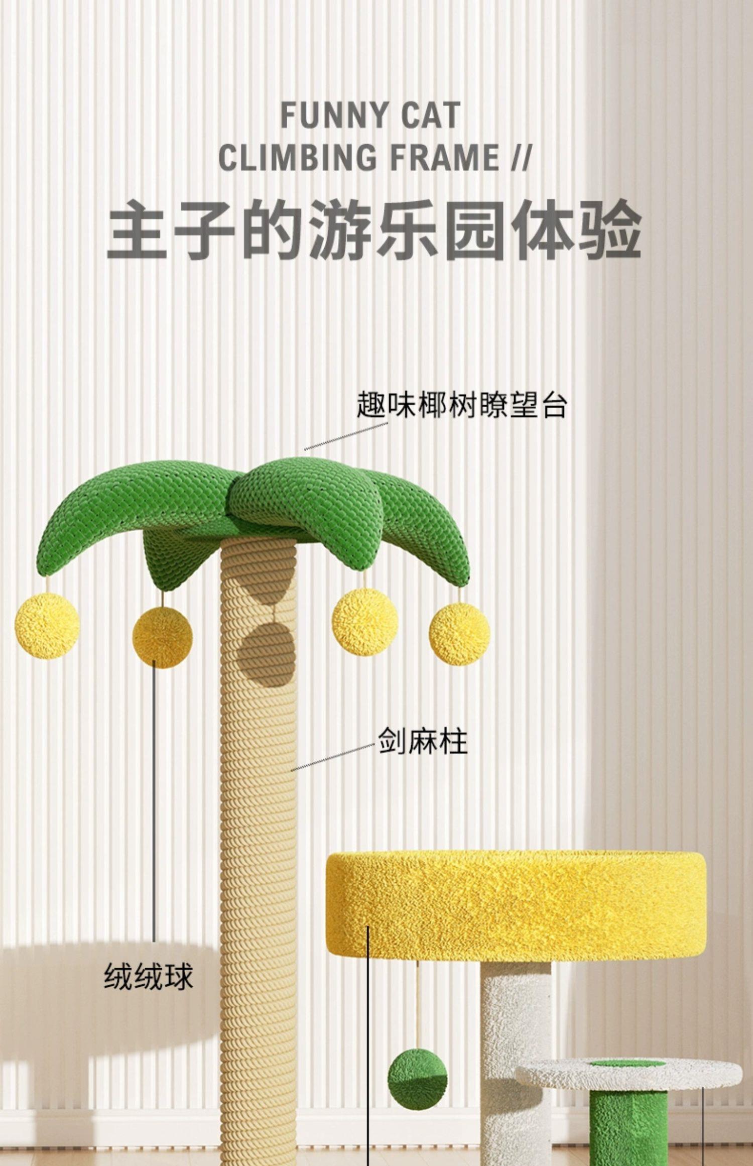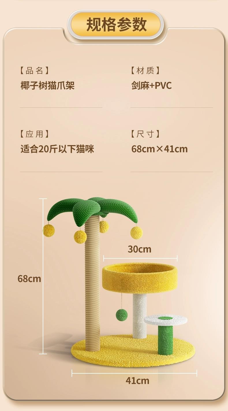 柱上缠绕天然剑麻白棕绳,有类似猫草的味道吸引猫咪磨抓,保护家具不损坏。