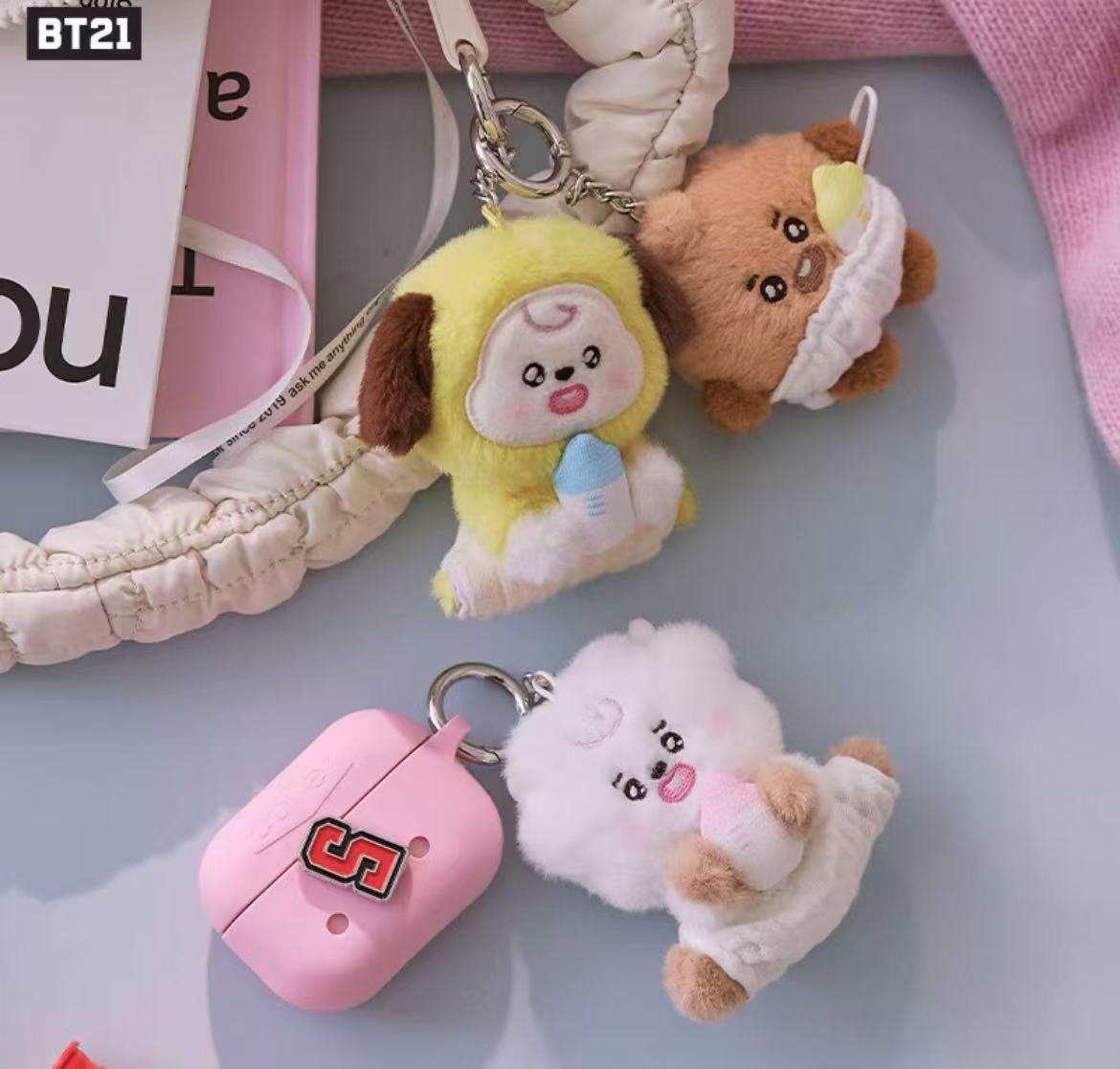 BTS官方本店韩国直售公仔,该系列以BT21的卡通角色为基础,有外星人TATA,羊驼RJ,小狗CHIMMY,小兔子COOKY等。每个角色都有独特的外观,被设计成可爱的婴儿形象,如BABYLYINGDOLLFLUFFY系类,睡姿萌态十足。