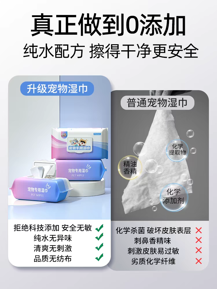 宠物湿巾是专为猫咪和狗狗设计的日常清洁用品,采用温和配方,能有效去除污渍、除臭、护理皮毛,同时避免对宠物皮肤造成刺激。无论是外出遛狗后的爪部清洁,还是猫咪泪痕的日常护理,宠物湿巾都能提供便捷高效的解决方案12。