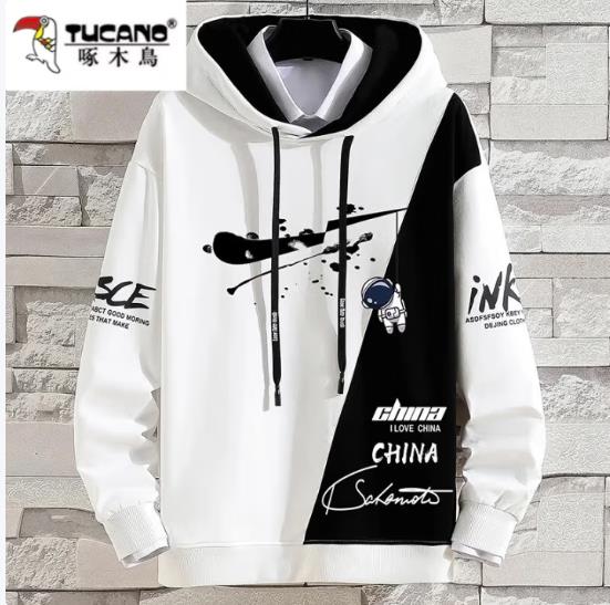 啄木鸟休闲卫衣男春秋季款潮流男士宽松休闲连帽卫衣套装外套上衣服男装 667-50白色(一件装) XL