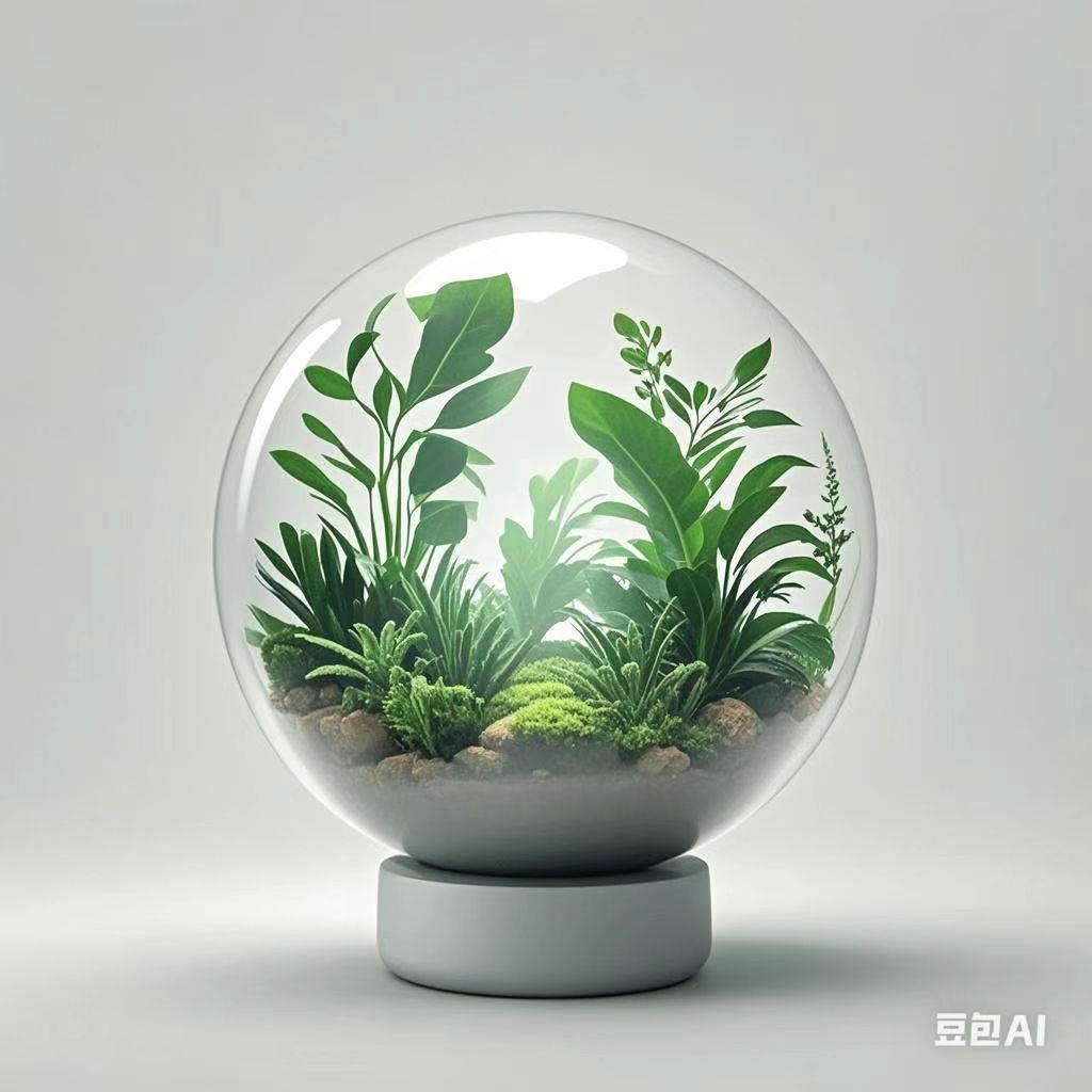 **设计美学**:手作陶土基座保留匠人指纹的温度,双层曲面玻璃采用无铅水晶工艺,将植物脉络的微观奇迹放大成震撼的生态画卷。晨光穿透瓶身时,苔藓绒毛在光线下泛起翡翠星辉,蕨类新芽蜷曲的姿态宛如凝固的绿色火焰。