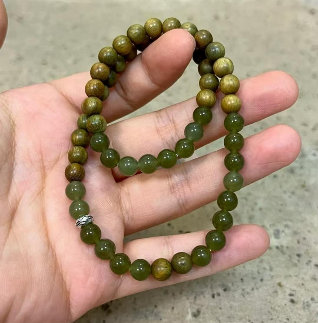 绿檀木自古便被视为吉祥之物,象征着健康与幸福 。它富含多种对人体有益的有机物质,常佩戴可强身健体,寓意长命百岁。同时,其高贵典雅的气质,能提升佩戴者的品味与自信。
