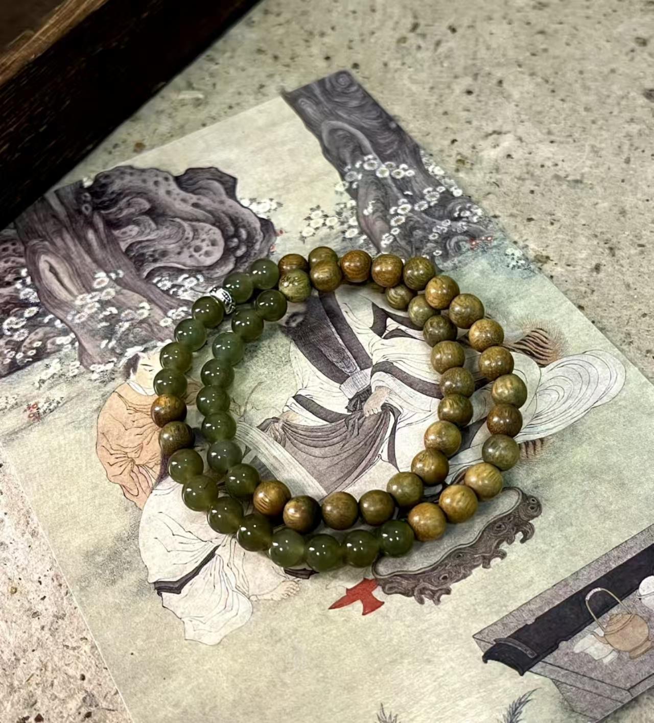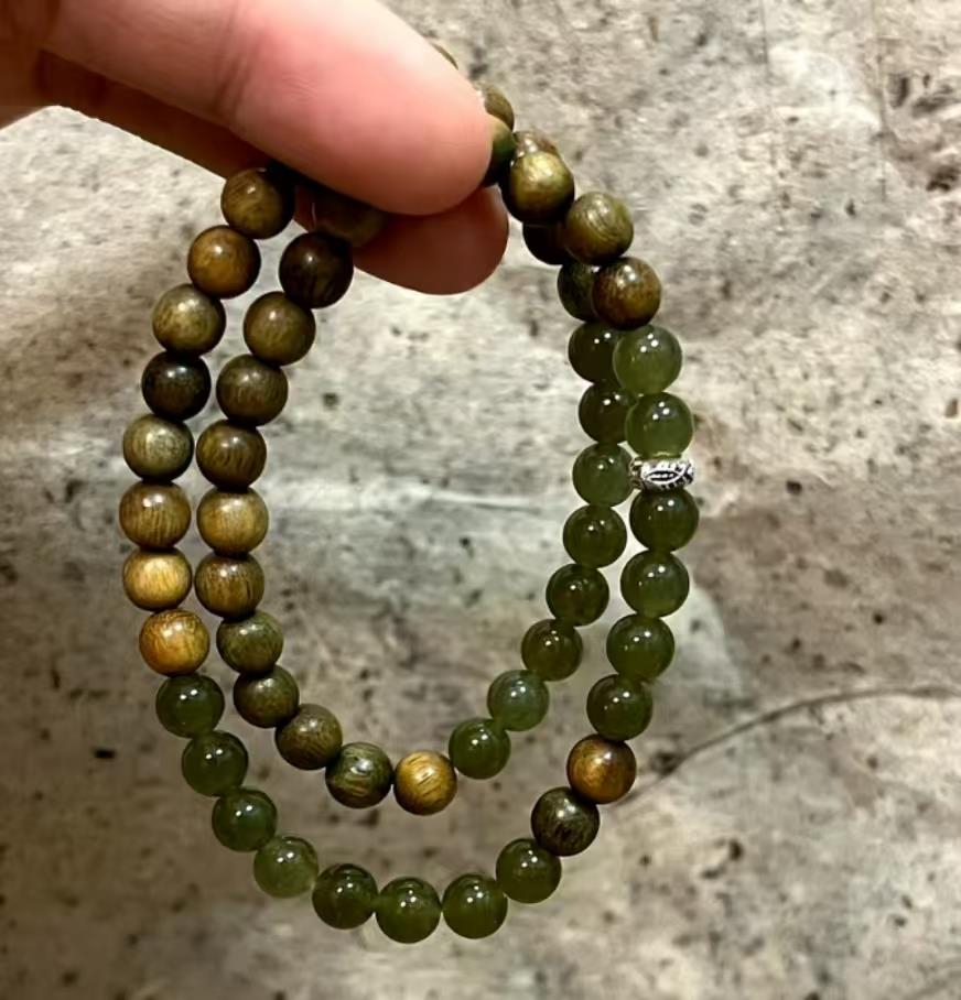 每天挤地铁时,手腕上的檀木手串总会飘来淡淡木香。这是表姐从云南带回来的,说绿幽灵水晶里的 "絮絮" 是山涧的云雾,绳结是手艺人照着风的形状编的。最忙的那段时间,我总在地铁上捏着木珠发呆,檀香味混着窗外的梧桐树影,竟慢慢让心跳静下来。有次暴雨天被困在站台,雨水打湿手串,木珠反而透出更清冽的香,像小时候在老家外婆的院子里,闻着桂花香听雨滴打瓦。现在每次转动珠子,都觉得手腕缠着一小段会呼吸的时光,那些让人皱眉头的事,好像也跟着木香散了。