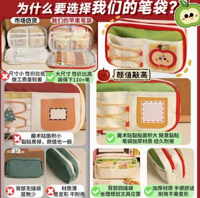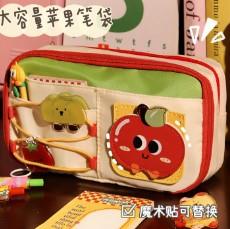 好运苹果笔袋可爱大容量可替换装饰魔术贴新款高颜值文具笔盒