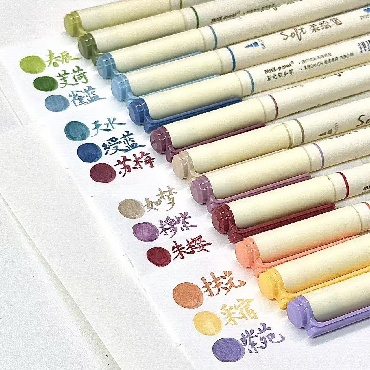 柔美配色,可用于多场景笔记绘画:日本进口弹性软笔头,易控笔