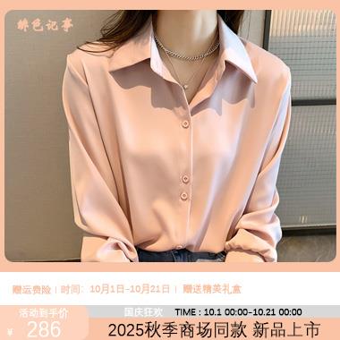 这款是2025秋季商场同步上新的缎面衬衫,甄选自带细腻光泽的垂感面料,上身如云朵轻贴肌肤,走动间泛着低调的柔光,衬得气色愈发柔和透亮。经典翻领+微宽松版型,不挑身形还藏肉,袖口自然堆叠出慵懒感,单排细纽扣顺着线条延伸,弱化了衬衫的生硬感,多了几分松弛的精致。