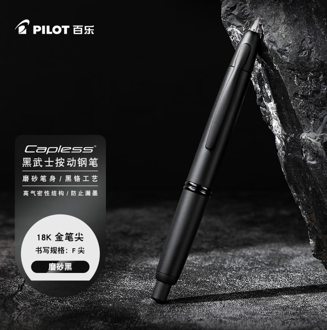 百乐黑武士,capless,按动式钢笔,磨砂笔杆,黑铬加工处理。