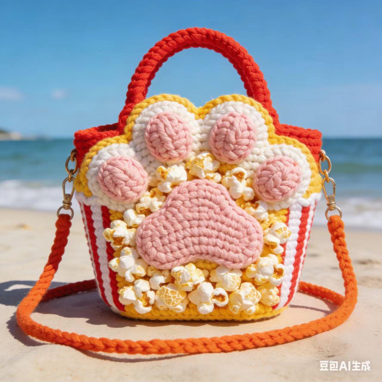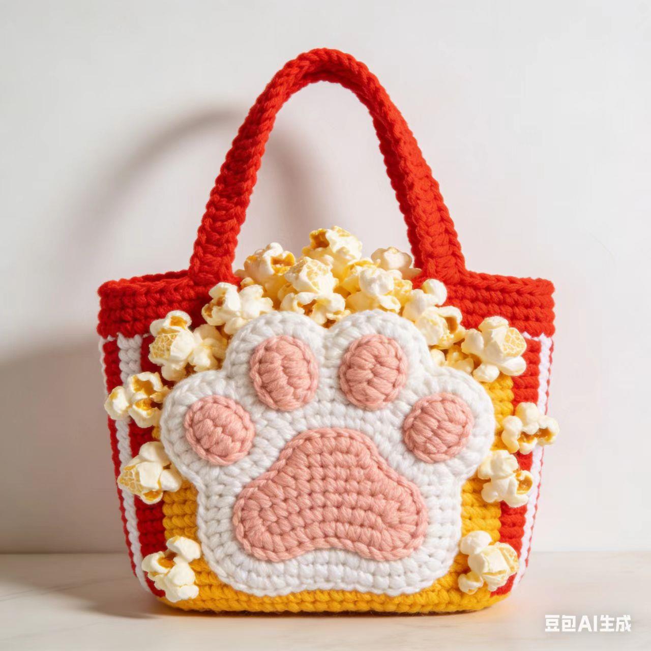 纯手工钩织工艺,每一针都藏着匠心,没有完全相同的两件成品;猫爪魔术贴开合设计,拿取物品方便又可爱,日常通勤、逛街约会都能背。