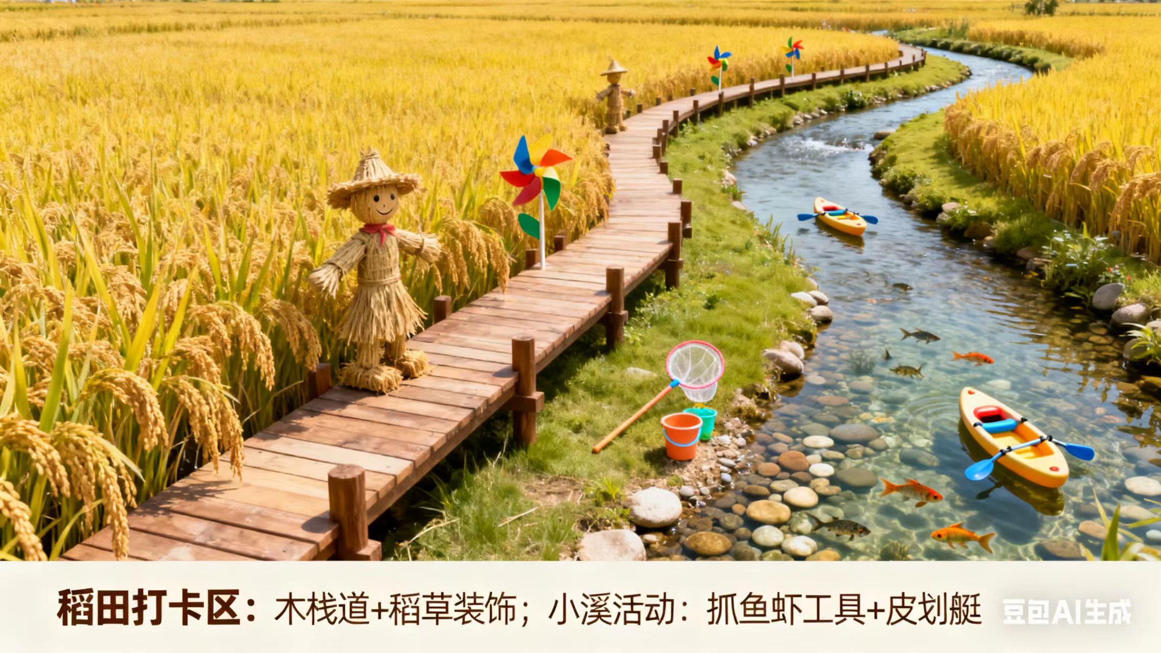 套餐内含网红打卡点位全覆盖权益:精心打造的禾下秋千、稻田小径木栈道、稻草人偶创意布景等多个出片点,随手一拍都是田园风大片;配备专业打卡道具包,含草编帽、复古花篮、氛围感纱幔等,让你的照片更具格调。我们还提供免费摄影指导服务,工作人员会告诉你最佳拍摄角度和姿势,新手也能拍出惊艳朋友圈的作品。帮你设计稻田打卡的朋友圈文案模板。此外,套餐附赠稻田小食一份(时令米糕、清甜米汤二选一),逛累了坐在田埂边,品尝原生态的美味,感受风吹稻浪的惬意。无论是亲子家庭记录温馨瞬间,还是闺蜜结伴打卡,这份套餐都能让你沉浸式体验田园之美。